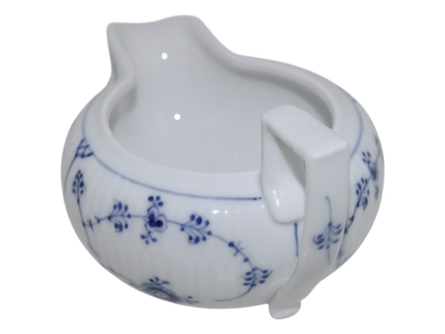 Beskrivelse: Royal Copenhagen Musselmalet Riflet, sjælden flødekande.