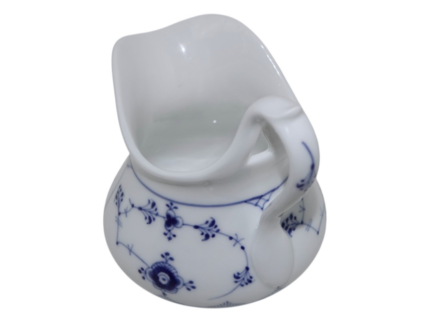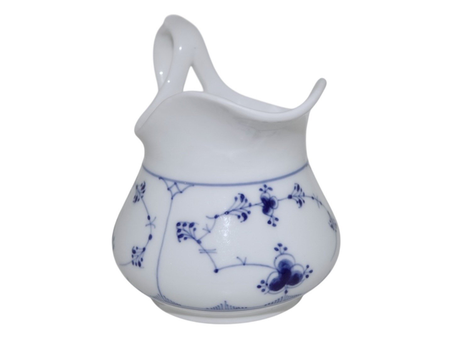 Beskrivelse: Royal Copenhagen Musselmalet Riflet, sjælden flødekande.