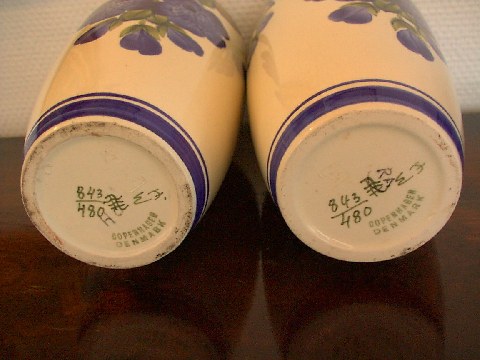 Description: Aluminia Royal Copenhagen Vases, decoration number 843/480, height 23 cm. Perfect condition.