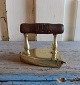 Lille messing strygejern med rundt bagparti produceret hos Kobbermøllen mellem 1848-63 |