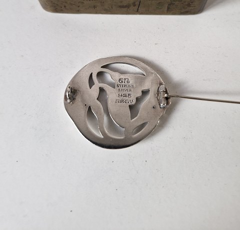 Evald Nielsen skønvirke broche i sølv dekoreret med vintergækker