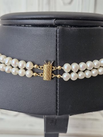 Meget smuk toradet kulturperle halskæde med lås i 18 kt guld