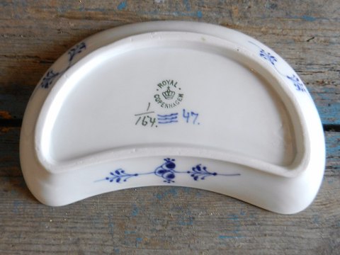 Royal Copenhagen Musselmalet riflet nyre formet asiet No. 154, 1.sort. Mål 9,5x16,5cm. Produceret mellem 1898-1923