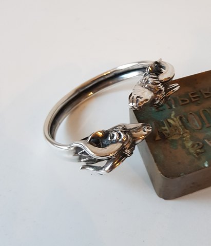 Vintage håndsmedet sølv armring med vædderhoveder.