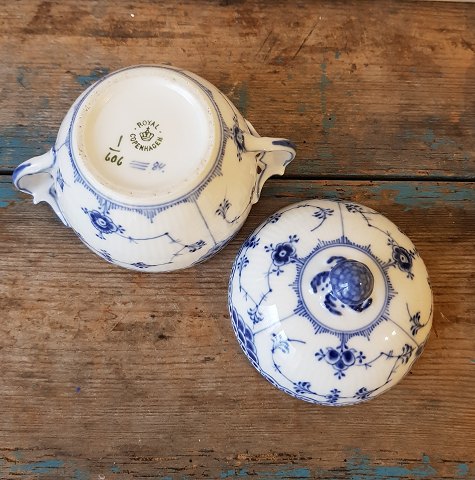 Royal Copenhagen Musselmalet halvblonde stor sukkerskål No. 606, 1. sort. Højde 13 cm. Diameter 11 cm. Produceret mellem 1898-1923