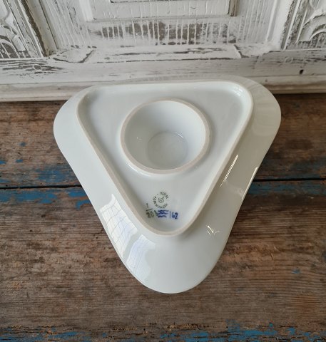 Royal Copenhagen Musselmalet riflet trekantet sauceskål No. 203, 1. sort. Mål 22 x 22 x 22 cm. Højde 12 cm. Produceret mellem 1898-1923