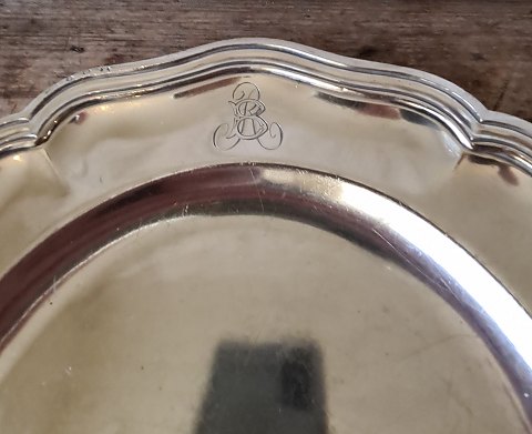 The dish is provided with French stamps and a beautiful monogram. Diameter 29.5 cm.