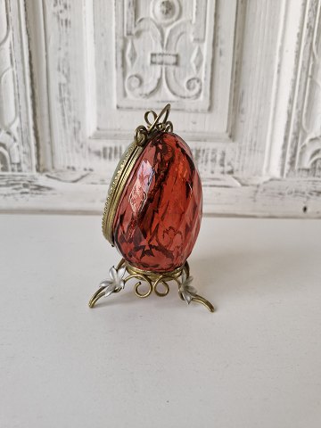 Art Nouveau ægformet ur skrin i hindbærfarvet glas med forgyldt montering