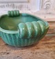 Michael Andersen riflet skål med hanke i smuk grøn farve Mål 12 x 20,5 cm. Højde 8 cm. Fremsår med mikro glasur chip.