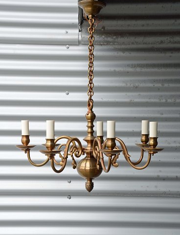 7armet lysekrone loftslampe i messing fra Gørtler A. Larsen, Hjørring.