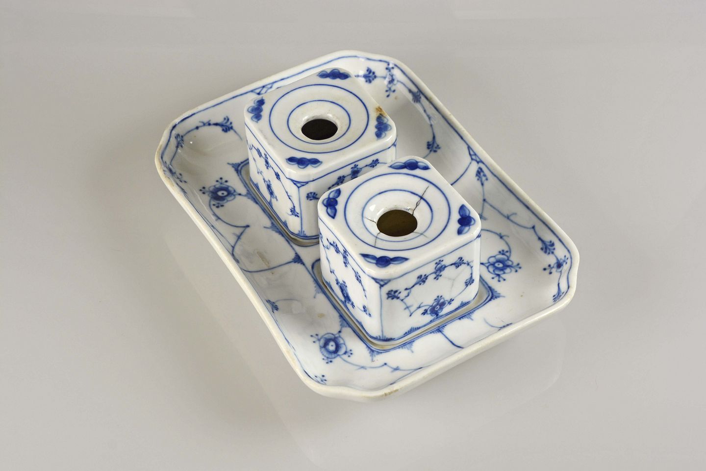 Blåmalet Blækhussæt fra perioden år 1853-1895 fra Bing og Grøndahl