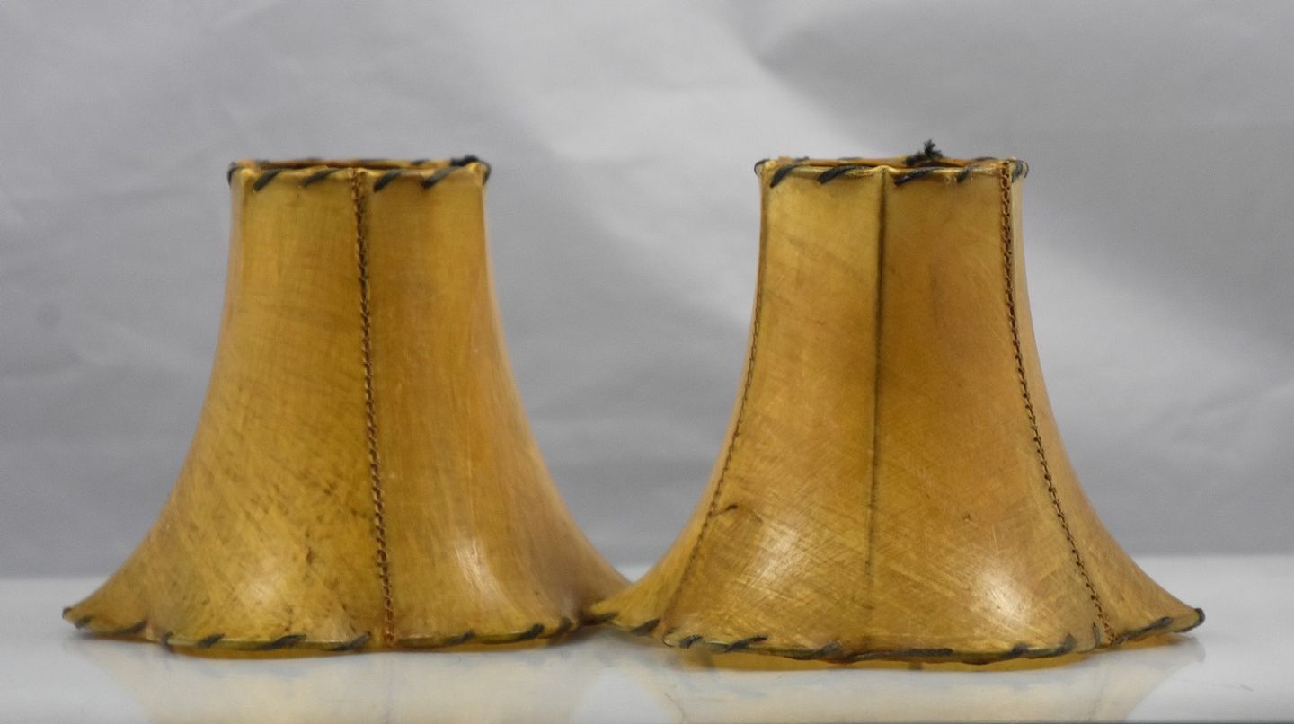 2 gamle lampeskærme lavet af svineblærer, lakeret.