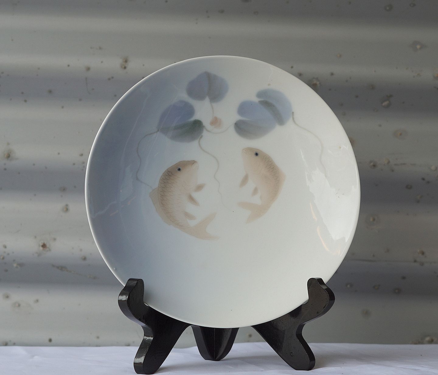 Lyseblå platte med fisk. Den Kongelige platte er lavet ca. 1893-1898