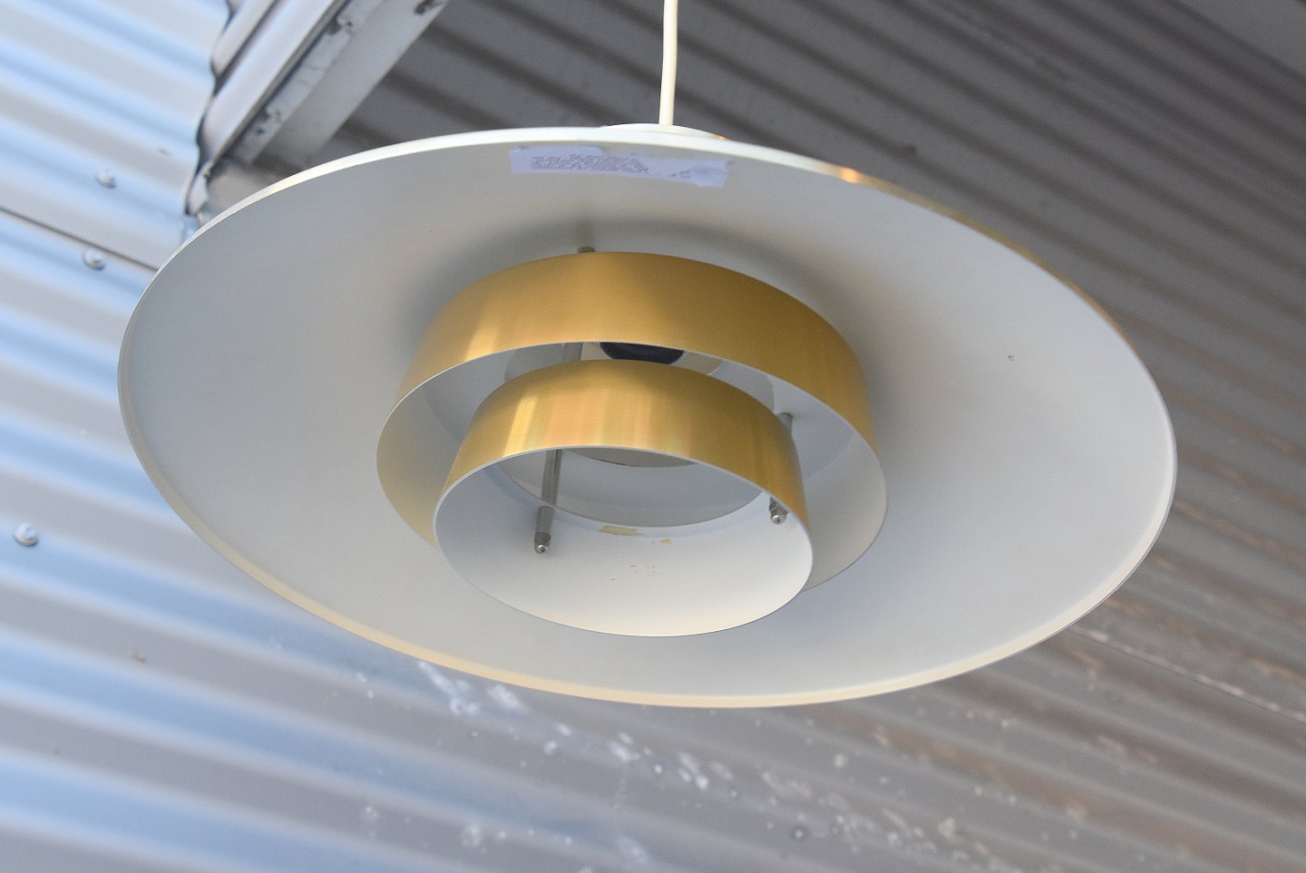 Retro, messing loftslampe. Lampen er hvid lakeret indvendig.
