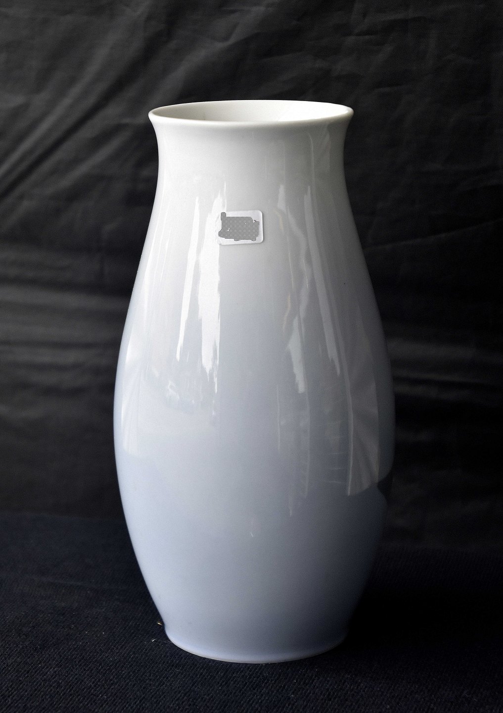 Bing & Grøndahl, B&G, porcelæn, vase, hvide blomster, hvide, blomster, grønne blade, grøn, blad