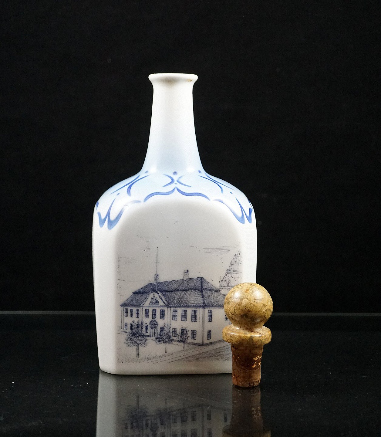 Bing & Grøndahl. Porcelænskaraffel nr. 382, med træprop.