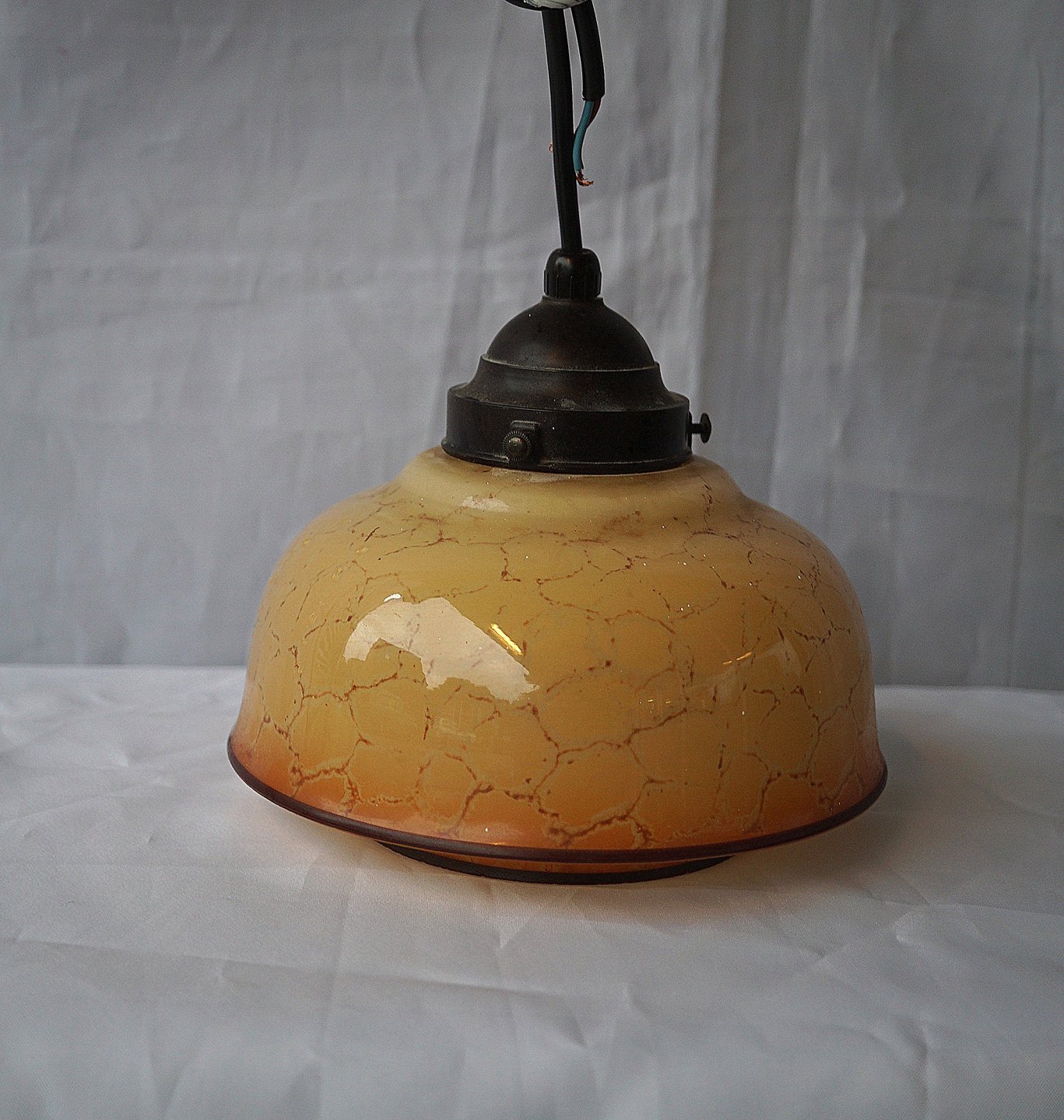 Loftslampe med glasskærme, der er malet så det ligner marmor,