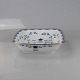 Smørnæb i hvidt porcelæn med guldkant med blå motiver af blomster og sommerfugle.