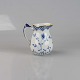 Kande i hvidt porcelæn med guldkant med blå motiver af blomster og sommerfugle.