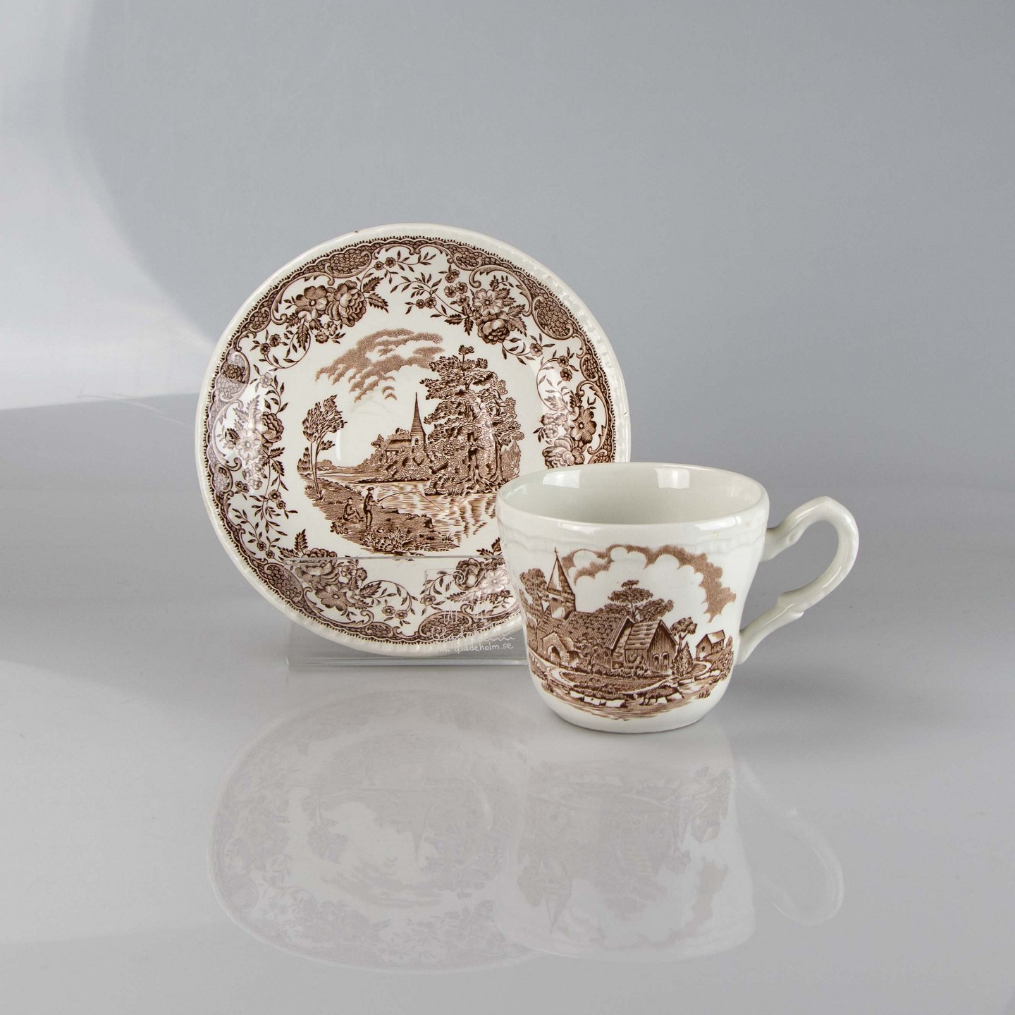 Kop med underkop i engelsk fajance fra stellet Olde England, Royal Tudor Ware nr. 691