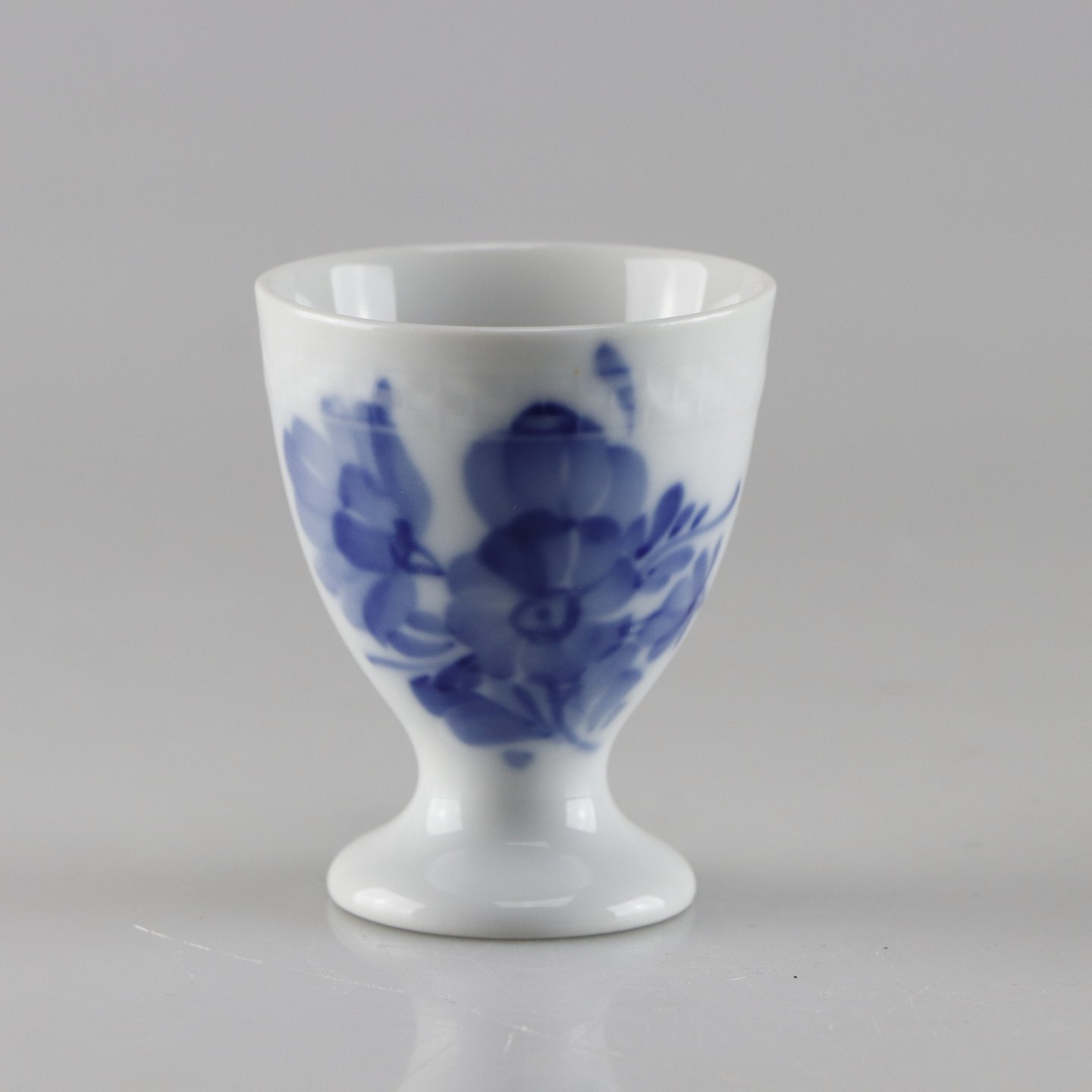 Glat hvidt porcelæn med flettet kant og dekoreret med blå blomster