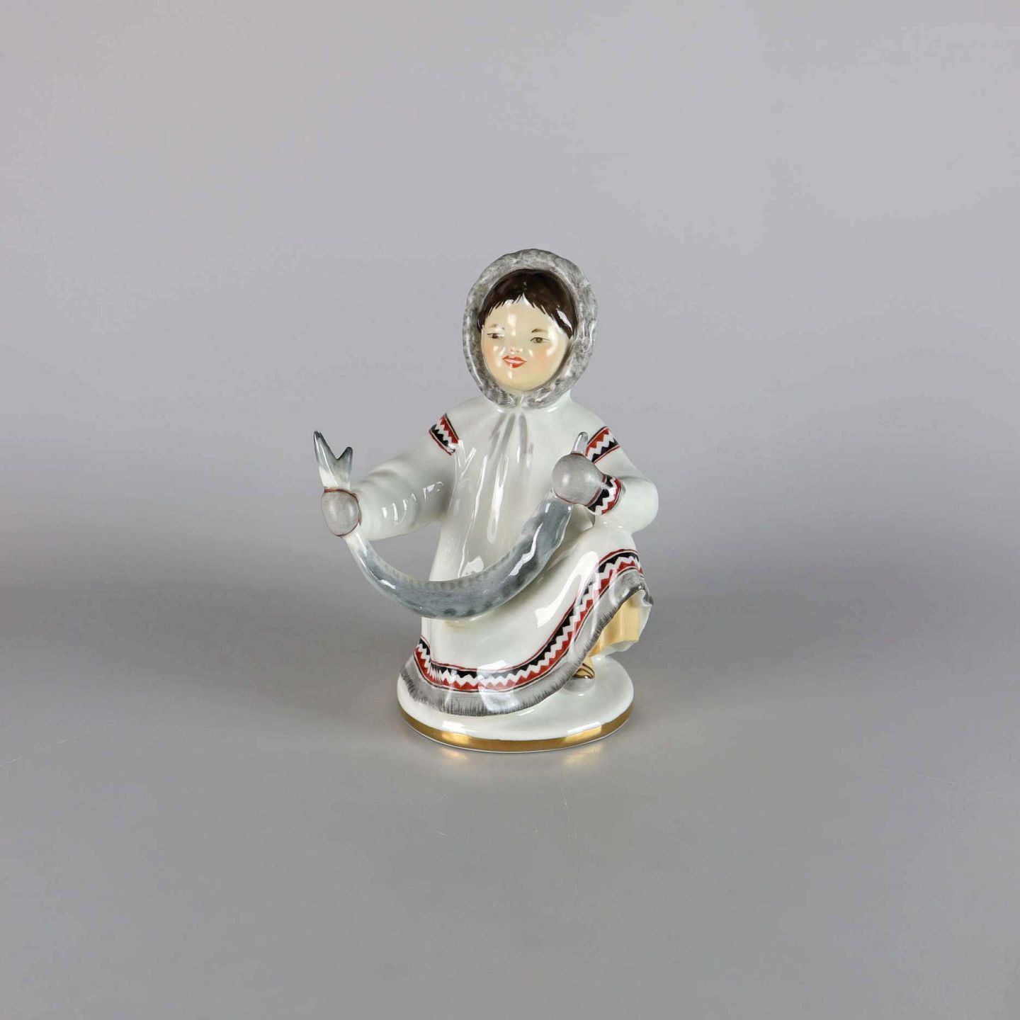 Russisk porcelænsfigur af en pige med fisk