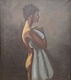 Indrammet oliemaleri på lærred med portræt af kvinde med et klæde om sig. Tekst på bagsiden: Eva 1965 Varde