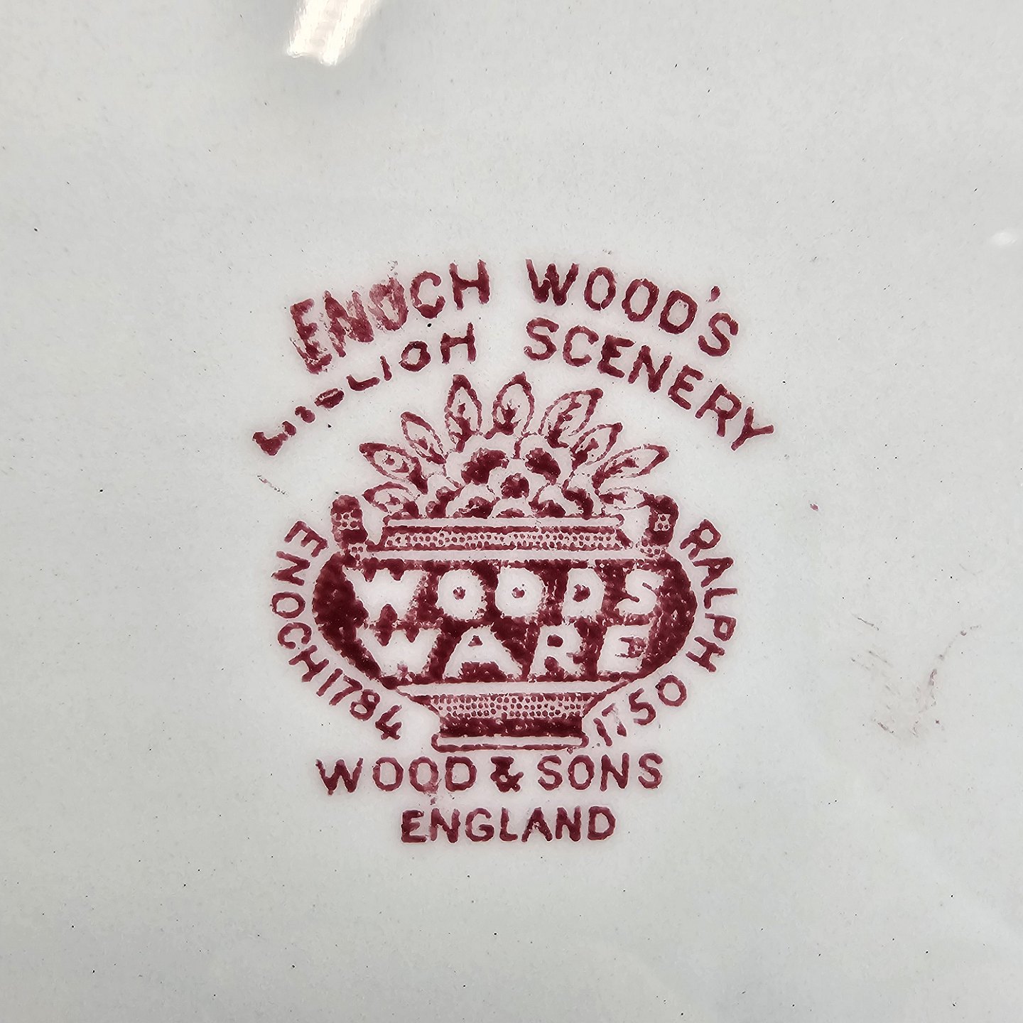 Ovalt fad fra det engelske stel Rød Paris (Enoch wood's, English scenery)