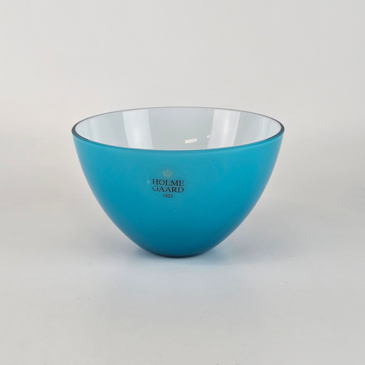 Mundblæst glasskål i lyseblå og med hvid inderside. Fra serien Cocoon