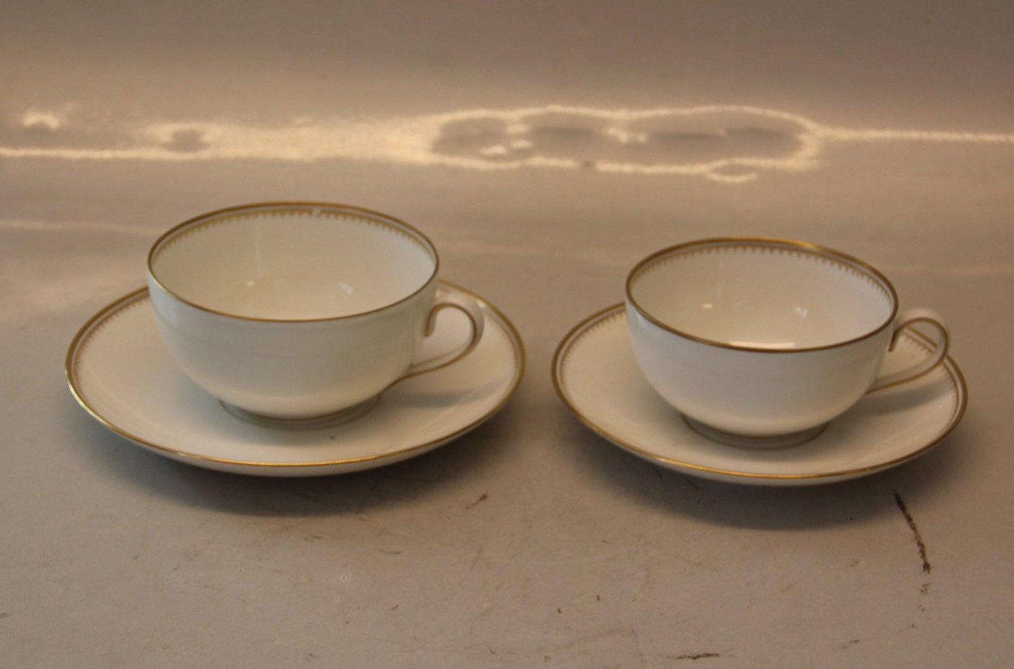 108 a Tea cup 4.7 x 9 cm and saucer 14.2 cm B&G Porcelain Menuet or Minuet White form, saw tooth gold rim, form 601