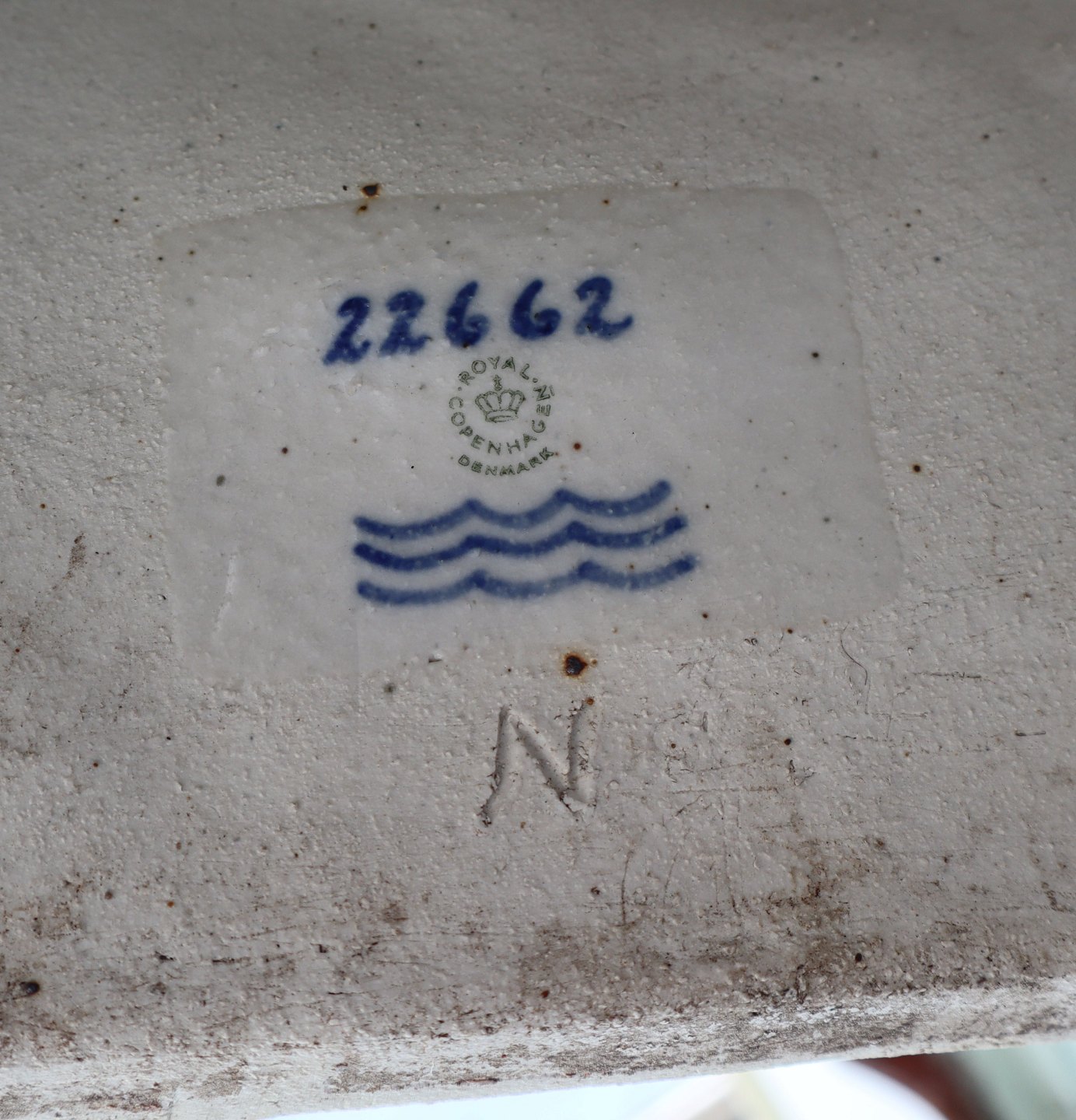 Beskrivelse: Johannes Hedegaard Royal Copenhagen stentøj 21424 RC "Martha" Kvinde med klæde 26 cm, JH, December 1956 I fin og hel stand Turkis glasur og chamotte