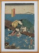 Kunisada, 19 c. , woodcut, motif of man and woman in a boat. |