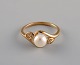 Danish goldsmith, modernist gold ring adorned with a cultured pearl.
