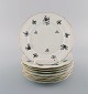 KPM, Polen. Et sæt på ti cremefarvede porcelænstallerkner med gulddekoration. |
