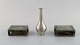 Just Andersen. To tændstikæske holdere og en vase i tin. 1930'erne. |