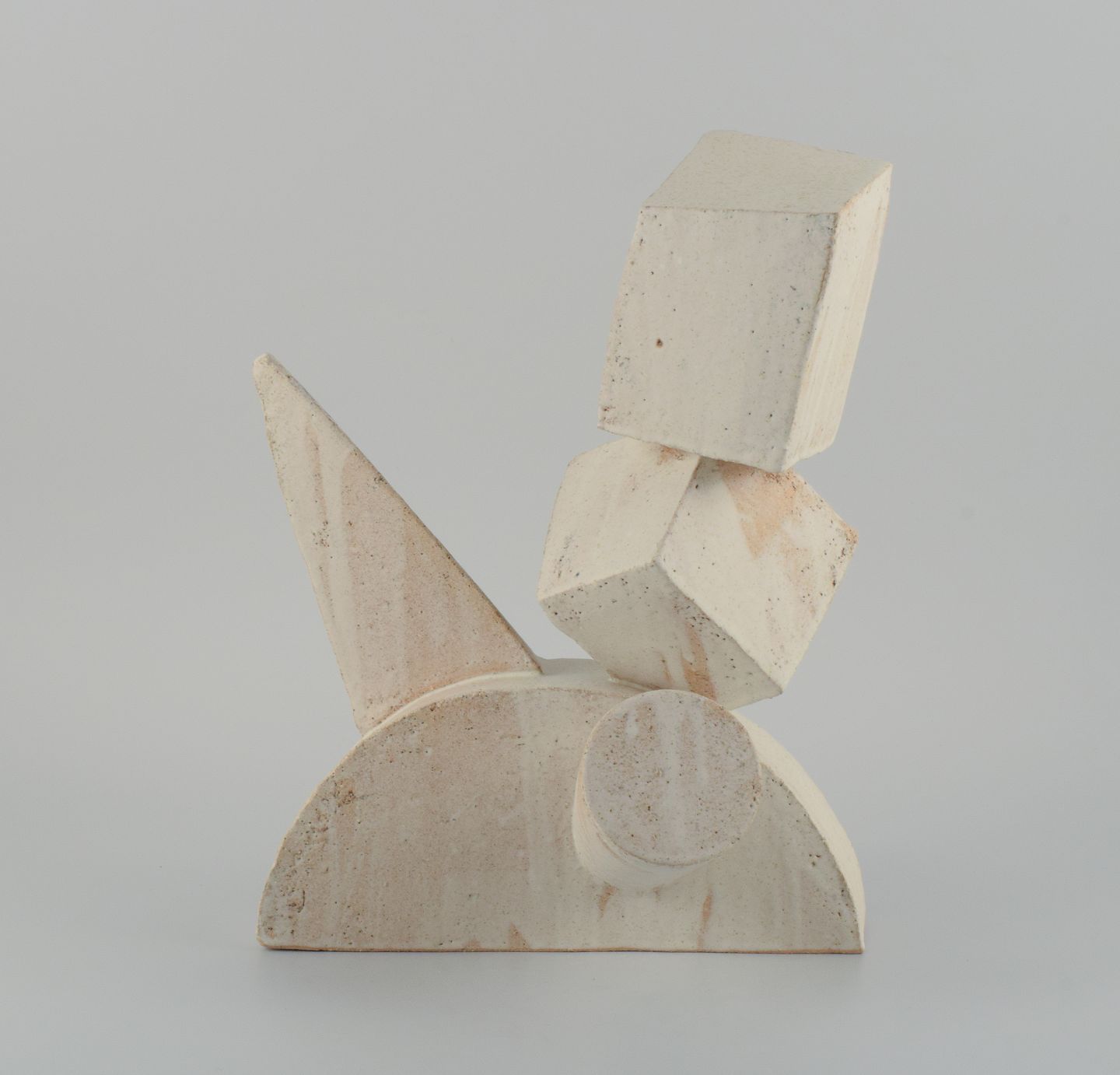 Cubist style monumental sculpture. This work is made from stoneware clay covered in off-white matte glaze.