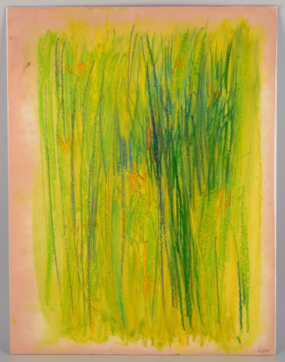 Monique Beucher (1934), French artist. Mixed media on paper. Abstract composition. Colorful palette. Dated 1980. In excellent condition. Slightly yellowed. Dimensions: 50.0 cm x 65.0 cm.