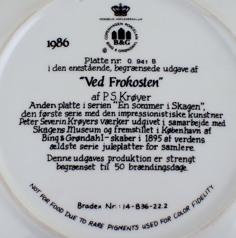 8 B&G platter med motiver fra Skagenskunstnere. 21.5 cm. I perfekt stand. 1. sortering. Begrænset oplag. Årgange : 86,87,88 og 89.