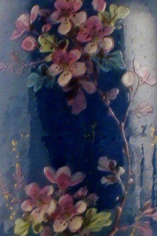 Clément Massier and Lucien Lévy-Dhurmer, large French vase in ceramics, painted with flowers. Blue glaze. Early 20 C. In good condition. 35.5 cm. tall.
