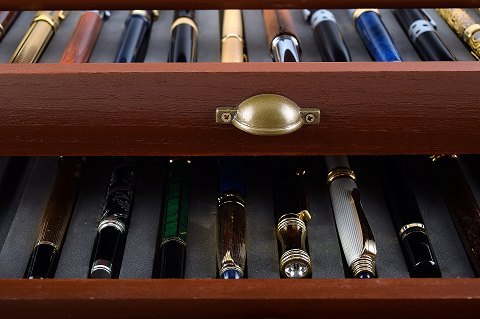 Stor samling Vaccaro kugle og fyldepenne i tręęske. Fremstillet i Tyskland. Pris kr. 200 pr. stk. I perfekt stand.
