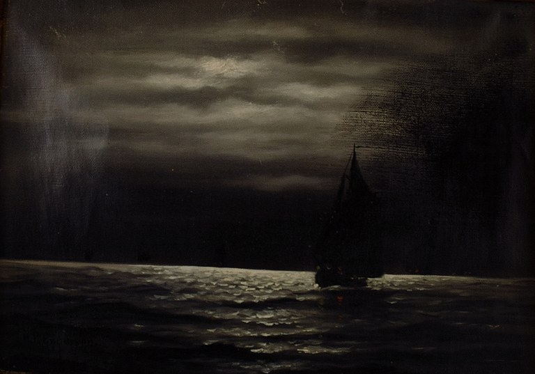 H. P. Engmann, olie på lærred, sejlskib til søs. Dansk marinemaler, ca. 1930´erne. I god stand. Måler 33 x 24 cm. Rammen måler 8 cm.