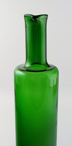 Nanny Still for Riihimäen Lasi, Finnish glass art decoration bottle, vase / pitcher. In perfect condition. Beautiful dark green color. 1960 / 70s. Measures 33 cm. Marked