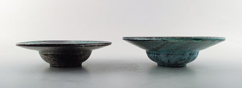 Et par Kähler, HAK, runde glaserede skåle, 1930'erne. Designet af Svend Hammershøi. Turkisgrøn/sort dobbeltglasur. Måler 15 cm. x 4,5 cm. Stemplet. I perfekt stand.