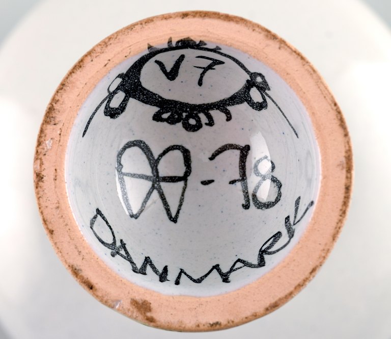 Bjorn Wiinblad unique ceramic vase. The Blue House. Model Number V7. Measures: 11 cm. x 13 cm. Signed, 1978. In perfect condition.