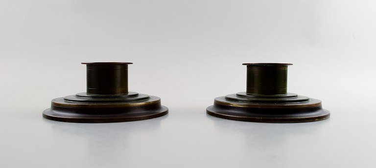 Just Andersen art deco, pair of light bronze low candlesticks, number LB 2122.