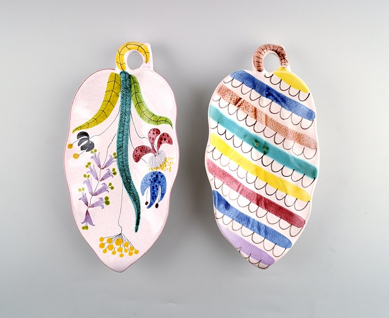 2 store fade, Stig Lindberg, Gustavsberg studio. Fajance. 1940´erne. Måler : 25.5 cm. Signeret med "studiohand". I perfekt stand.