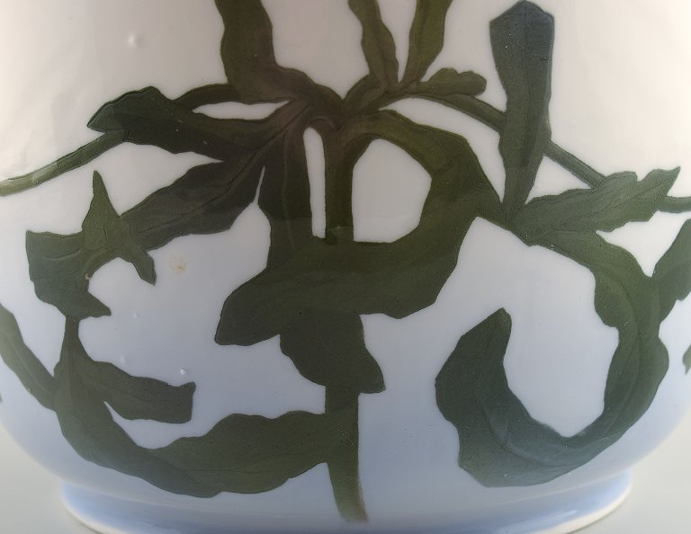 Royal Copenhagen Art Nouveau vase / flower pot decorated with flowers and foliage. Rare form. Early 20 c.