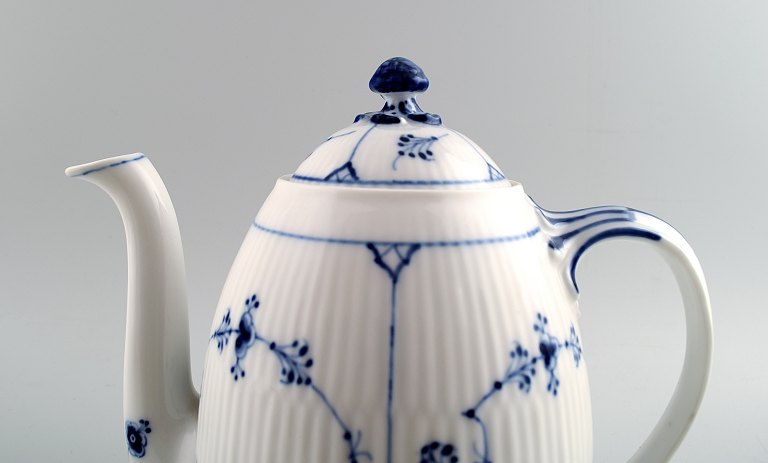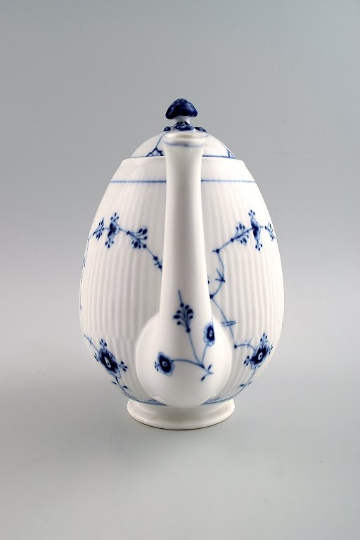 Royal Copenhagen Musselmalet riflet, sjælden kaffe/chokoladekande. No. 375. Højde 20 cm. 18 cm. bred. Produceret mellem 1905-1923. I perfekt stand. 1. sortering.