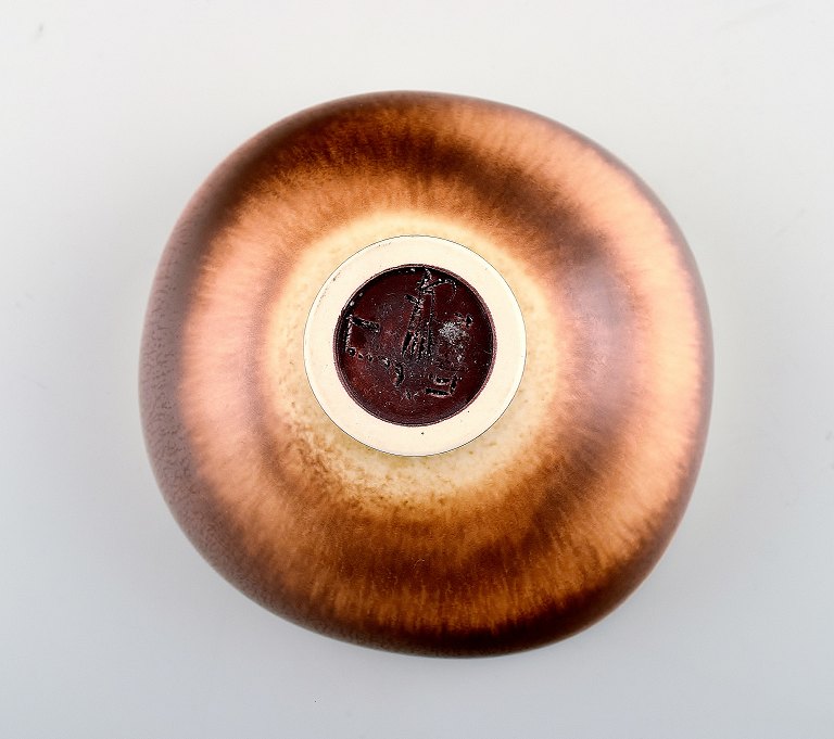 Berndt Friberg Studio art pottery vase. Modern Swedish design. Unique, handmade. Amazing glaze in shades of brown! Perfect. 1st. factory quality. Signed. Measures: 13 cm. x 8 cm.