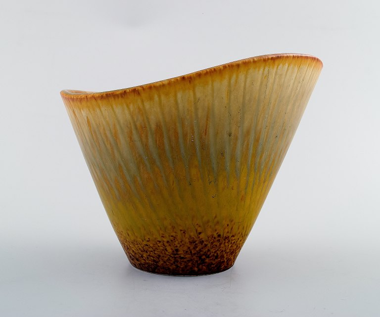 Carl Harry Stålhane/Stalhane, Rörstrand/Rorstrand stoneware vase. Beautiful glaze in yellow, green and brown shades.